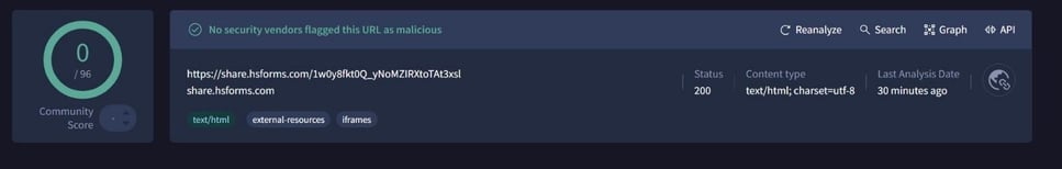 - Detection Status: 0 out of 96 Anti-Virus vendors in Virus Total were detecting the URL, only NACE detected Phishing at the time of writing this blog and the Phishing URL was active.