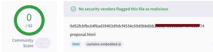 Attachment: A single HTML file labelled proposal.html. Proposal in HTML - a red flag, yet often overlooked. |