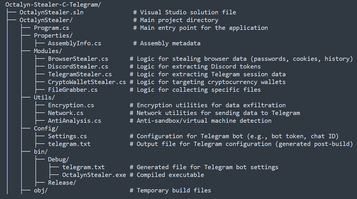 Once the ZIP is extracted using the copied password, the victim encounters a file posing as an MS-Word document — which in reality is the Octalyn Stealer executable. Octalyn is not just another commodity malware. It is part of a new wave of open-source, modular info-stealers, hosted brazenly on public repositories like GitHub.